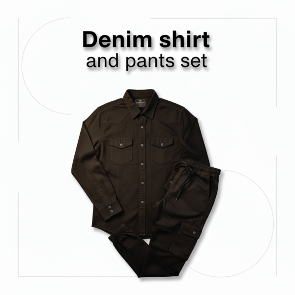 প্রিমিয়াম ব্ল্যাক ডেনিম শার্ট ও কার্গো প্যান্ট স্টাইলিশ কম্বো