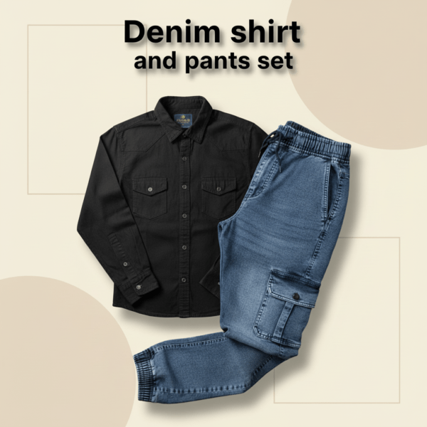 প্রিমিয়াম ব্ল্যাক ডেনিম শার্ট ও কার্গো প্যান্ট স্টাইলিশ কম্বো